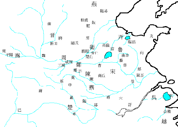 | 鲁 | 齐 | 晋 | 秦 | 楚 | 宋 | 卫 | 陈 | 蔡 | 曹 | 郑 | 燕 | 吴 | 越 | |||
